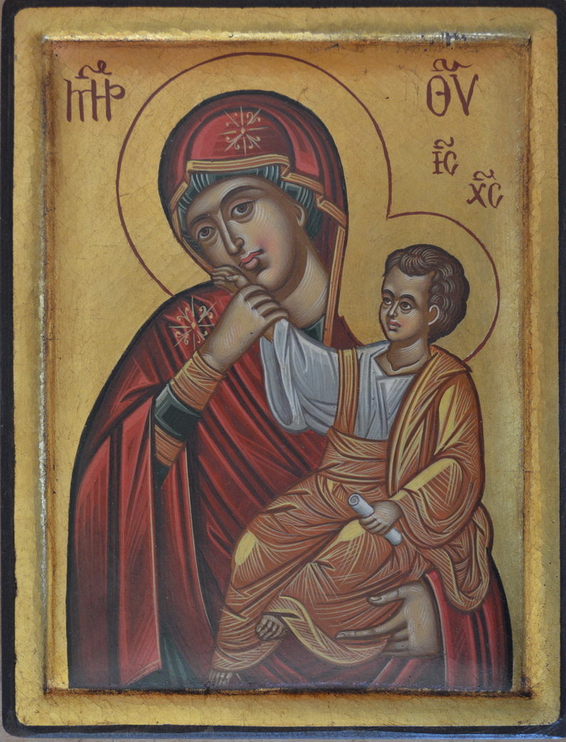Αυγοτέμπερα, 22κ χρυσό, καμβάς πάνω σεεξαιρετικής ποιότητας ξύλο φλαμουριάς.Αντίγραφο της Ιερής εικόνας της Παναγίαςτης Παραμυθιάς που βρίσκεται στο ΑγιονΟρος