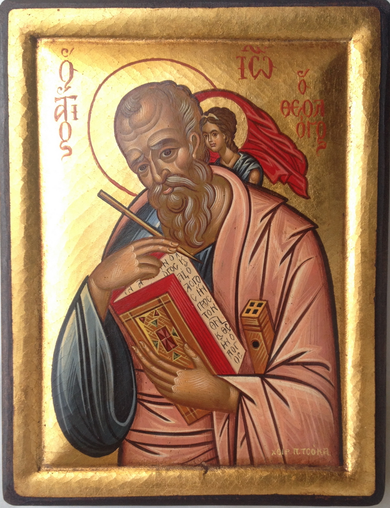 Aυγοτέμπερα, 22κ χρυσό, καμβάς πάνω σε εξαιρετικής ποιότητας ξύλο φλαμουριάς.Αντίγραφο εικόνας του 16ουαιώνα που βρίσκεται στην Ιερά Μονή της Πάτμου
