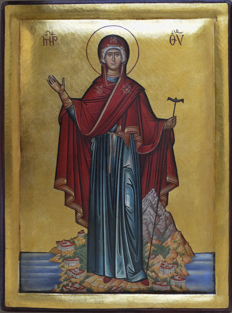 Αυγοτέμπερα, 22κ χρυσό, καμβάς πάνω σε εξαιρετικής ποιότητας ξύλο.Αντίγραφο εικόνας του Αγίου Ορους