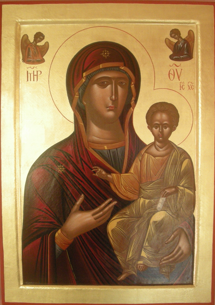 Αυγοτέμπερα, 22κ χρυσό, καμβάς πάνω σεεξαιρετικής ποιότητας ξύλο φλαμουριάς.Αντίγραφο εικόνας του Μ.Δαμασκηνού απότον 17 ο αιώνα.
