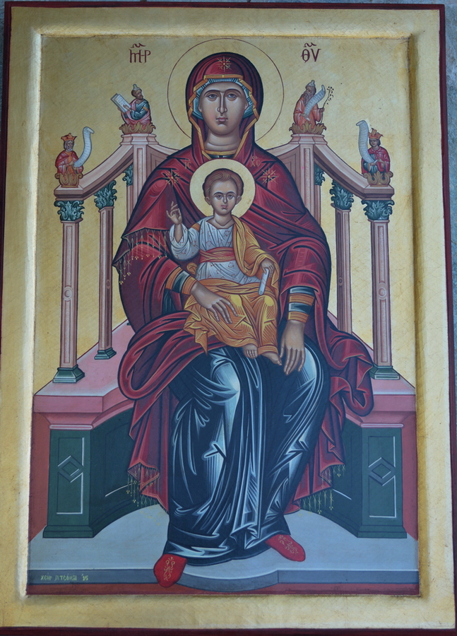 Αυγοτέμπερα, 22κ χρυσό, καμβάς σεεξαιρετικής ποιότητας ξύλο φλαμουριάς.Αντίγραφο εικόνας του 17 ου αιώνα του Εμμανουήλ Τζάννες Μπουλιάνη.