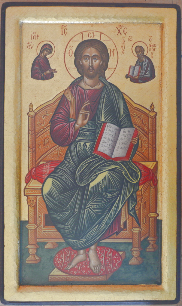 Αυγοτέμπερα, 22κ χρυσό, καμβάς πάνω σεεξαιρετικής ποιότητας ξύλο φλαμουριάς.Αντίγραφο εικόνας του 15 ου αιώνα απότο Σπήλαιο τηε Αποκάλυψης στην Πάτμο.